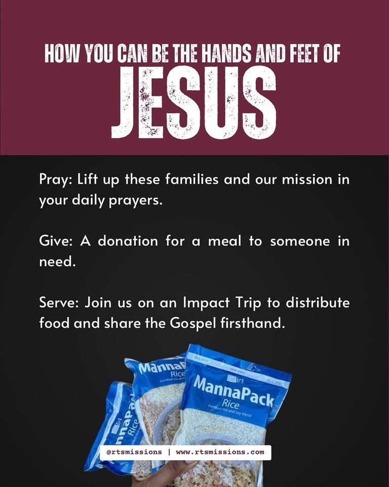 As food distribution partners for Feed My Starving Children, RTS Missions has provided over 500,000 meals to children and families in need. Our ministry areas are in very rural areas along the border of Haiti and the Dominican Republic. There are thousands of families living day to day not knowing where their next meal will come from. You can help us help them. We are praying that we are able to serve 1 million meals over the next year to those in dire need giving us the opportunity to also share the Gospel with them.